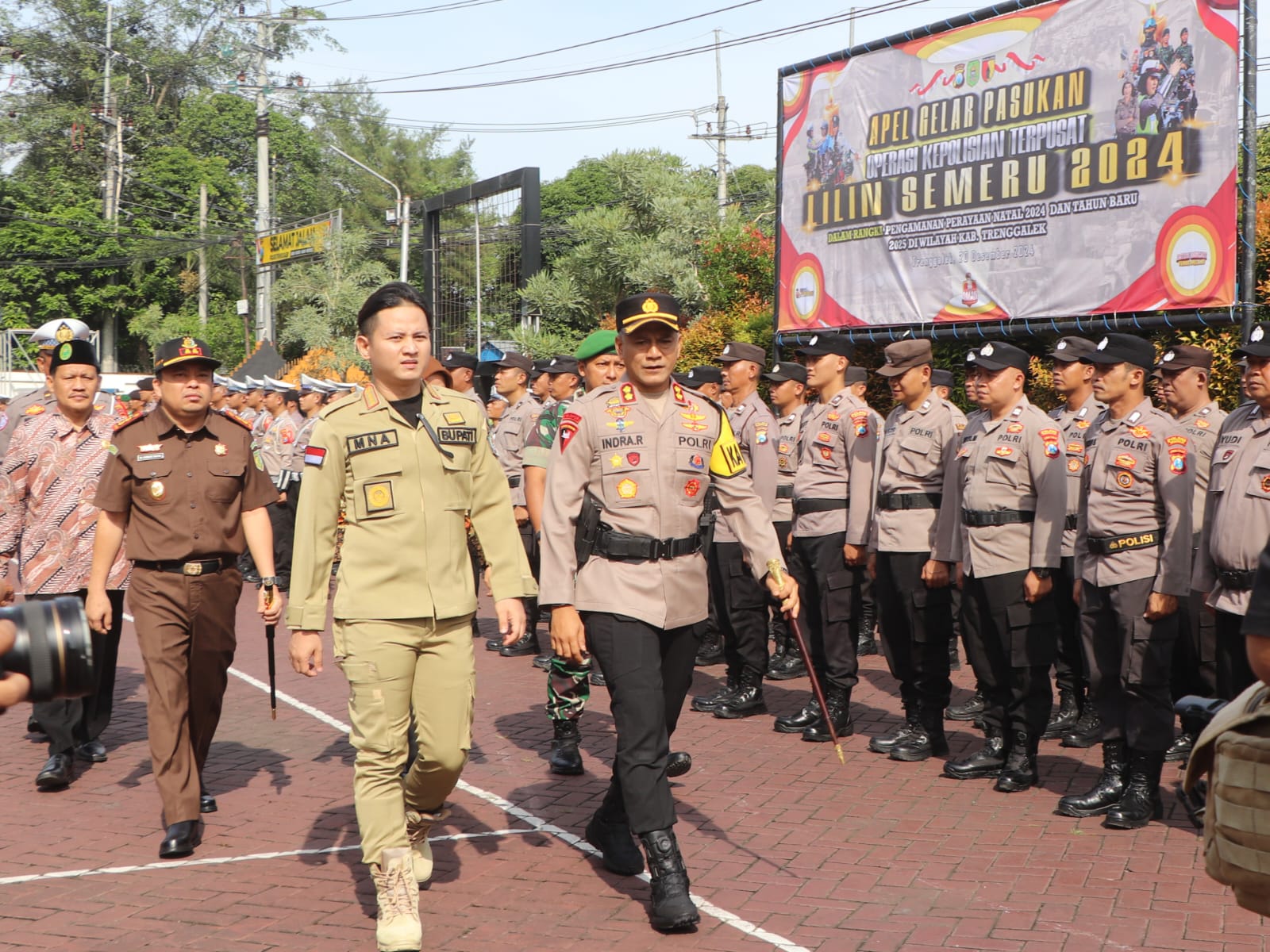 Polres Trenggalek – Ratusan personel gabungan mengikuti apel gelar pasukan `Operasi Lilin Semeru 2024` dalam rangka pengamanan Natal 2024 dan Tahun Baru 2025 (Nataru) di halaman Mapolres Trenggalek. Jumat, (20/12).