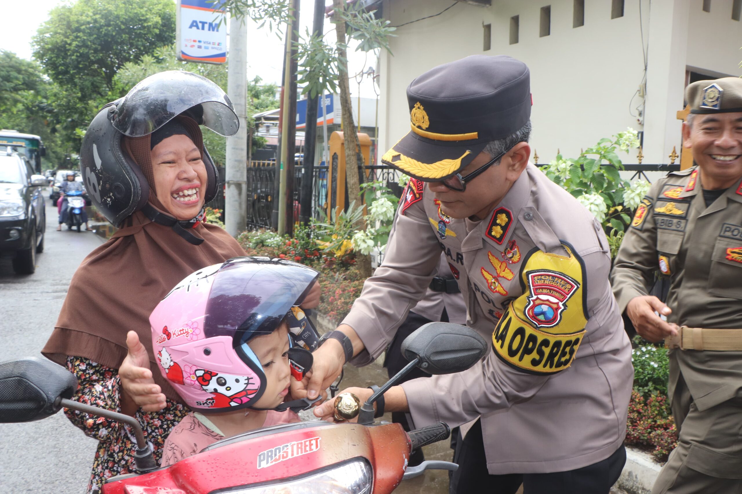 Tak tanggung-tanggung, Kapolres Trenggalek AKBP Indra Ranu Dikarta, S.I.K., M.Si. bersama Dandim 0806/Trenggalek Letkol Czi Yudo Aji Susanto, S.Sos.,M.A., didampingi sejumlah pejabat utama turun tangan langsung ikut membagikan helm kepada masyarakat pengguna jalan.