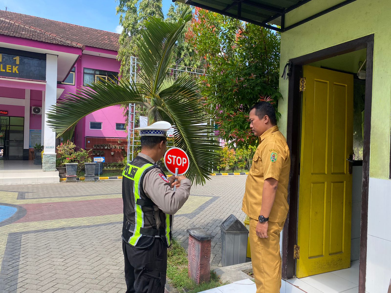 Bantu Supeltas dan Satpam Sekolah, Satlantas Trenggalek Bagikan Puluhan Rambu Stop Portabel