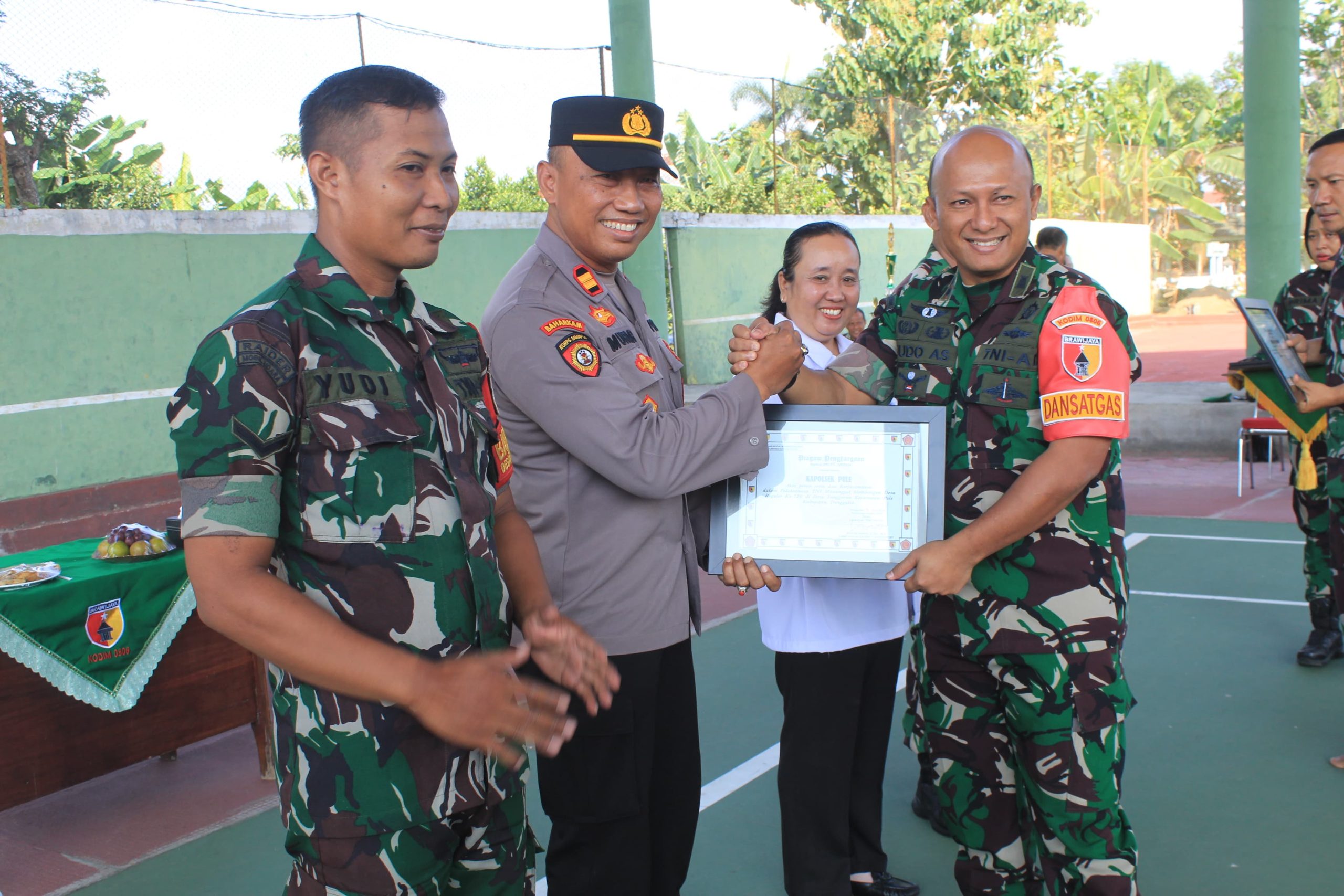 Penghargaan tersebut diberikan atas kerjasama yang baik dalam mendukung dan menyukseskan TNI Manunggal Membangun Desa (TMMD) ke-120 yang diselenggarakan di desa Tanggaran Kecamatan Pule Kabupaten Trenggalek beberapa waktu yang lalu.