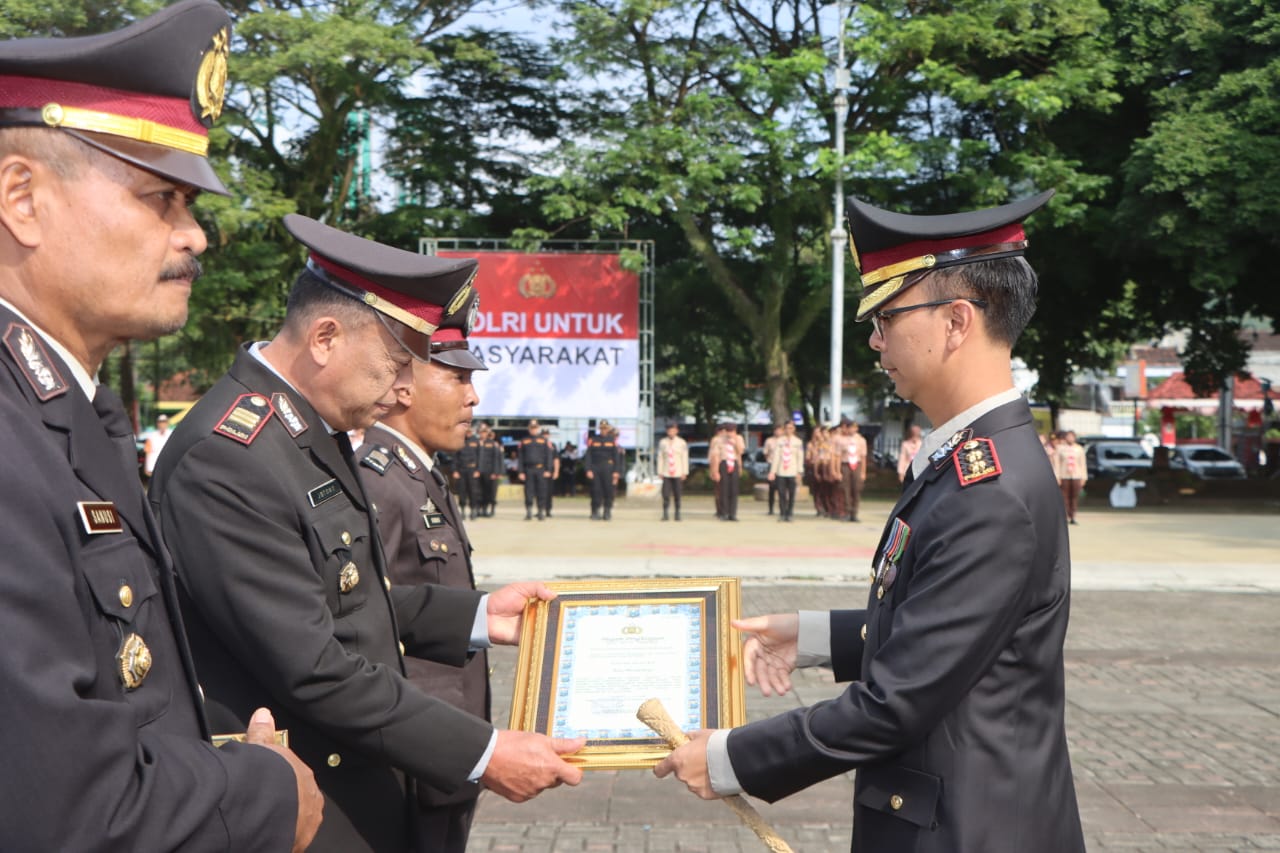 Polres Trenggalek – Kapolres Trenggalek AKBP Ridwan Maliki, S.H., S.I.K., M.I.K. memberikan penghargaan kepada sejumlah anggota dan masyarakat yang dinilai memiliki peran dan berprestasi dalam pengelolaan Kamtibmas kondusif.