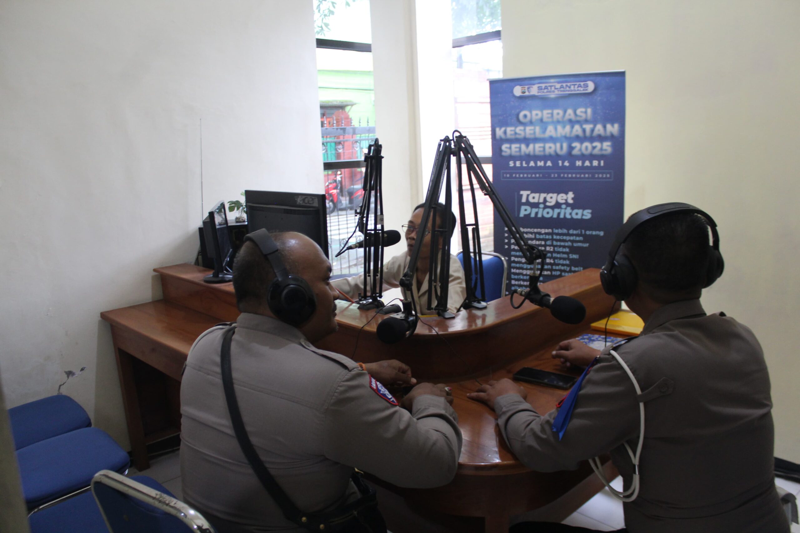 Polres Trenggalek – Memasuki hari kedua Operasi Keselamatan Semeru 2025, jajaran Satlantas Polres Trenggalek menggelar sosialisasi dan edukasi tertib berlalu lintas kepada masyarakat luas. Sosialisasi dilakukan dengan berbagai cara dan media yang bervariatif. Salah satunya dengan menggandeng stasiun radio. Selasa, (11/2).