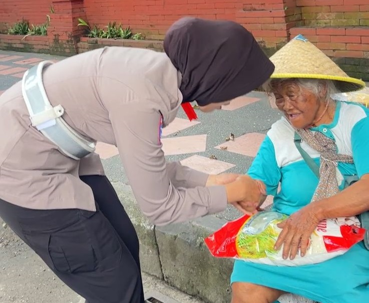 Di sela-sela kesibukannya dalam menjaga Kamtibmas yang kondusif, sejumlah petugas yang merupakan anggota Polisi Wanita (Polwan) Polres Trenggalek Nampak berkeliling di seputaran kota. Tak sekadar tangan kosong, para Srikandi yang juga anggota Satlantas Polres Trenggalek ini nampak membagikan Sembako. Sabtu, (22/3).