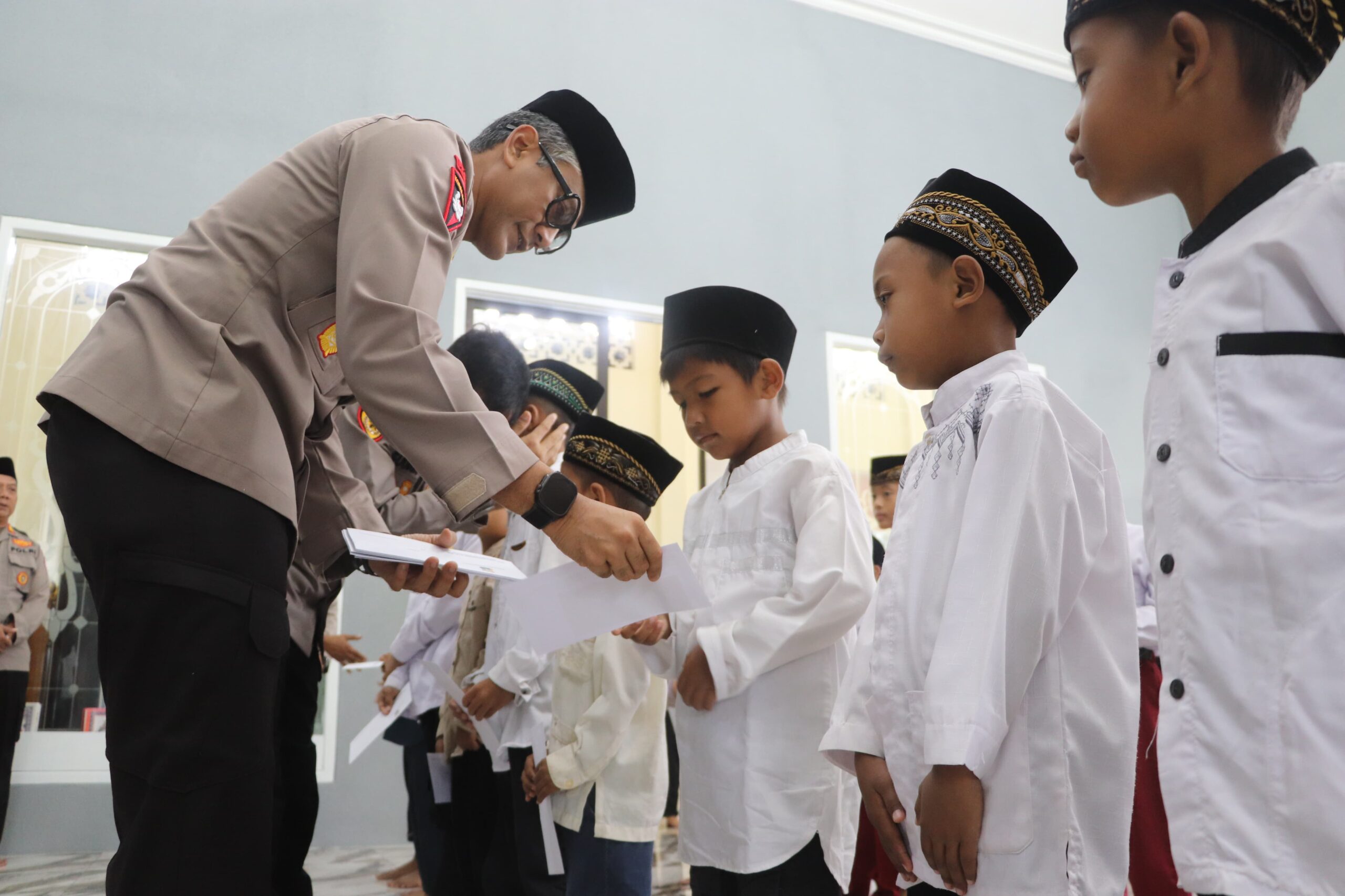 Didampingi sejumlah pejabat utama, Kapolres Trenggalek AKBP Indra Ranu Dikarta, S.I.K., M.Si. berkenan menyerahkan secara langsung santunan kepada sedikitnya 50 orang anak-anak yatim/piatu disaksikan oleh para pendamping.