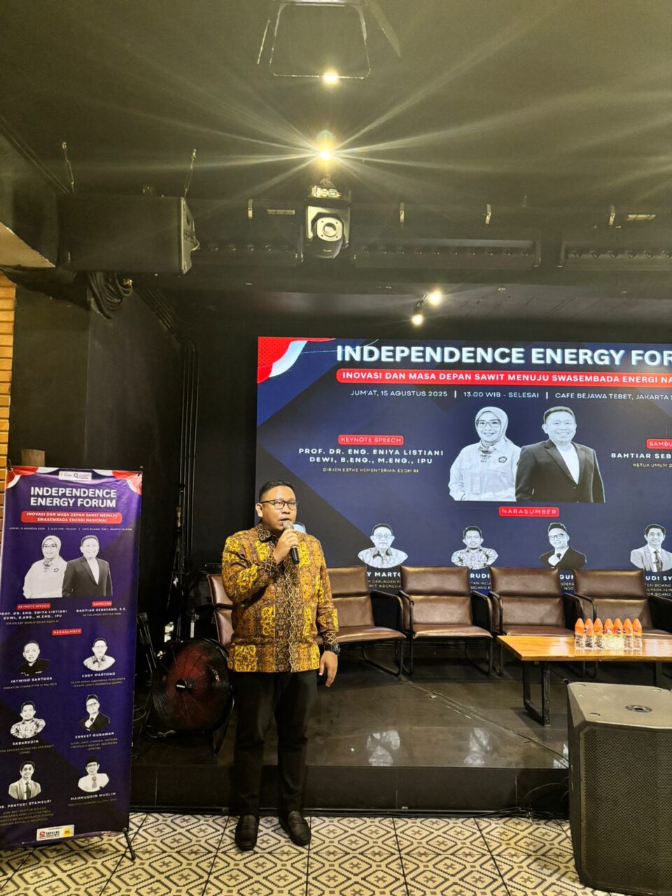 Dalam menjawab berbagai potensi dan tantangan itu, Ikatan Keluarga Alumni Ikatan Senat Mahasiswa Ekonomi Indonesia (IKA ISMEI) menggelar Dialog Energi bertajuk “Inovasi dan Masa Depan Sawit Menuju Swasembada Energi Nasional” sebagai bentuk komitmen untuk mendukung transisi energi terbarukan dan memastikan penguatan ketahanan energi di Indonesia. Acara ini menghadirkan Prof. Dr. Eng. Eniya Listiani Dewi, B.Eng., M.Eng., IPU selaku Dirjen EBTKE Kementerian ESD sebagai pembicara utama. Selain itu, hadir pula sejumlah narasumber penting, yakni Jatmiko Santosa, Direktur Utama PTPN IV PalmCo; Ernest Gunawan, Sekretaris Jenderal Asosiasi Produsen Biofuel Indonesia (APROBI); Sabarudin, Ketua Serikat Petani Kelapa Sawit (SPKS); Eddy Martono, Ketua Umum Gabungan Pengusaha Kelapa Sawit Indonesia (GAPKI); Mahmuddin Muslim, Praktisi Ekonomi/Alumni ISMEI; Dr. Prayudi Syamsuri, Staf Ahli Menteri Bidang Manajemen Konektivitas pada Kementerian Koordinator Bidang Pangan Republik Indonesia.