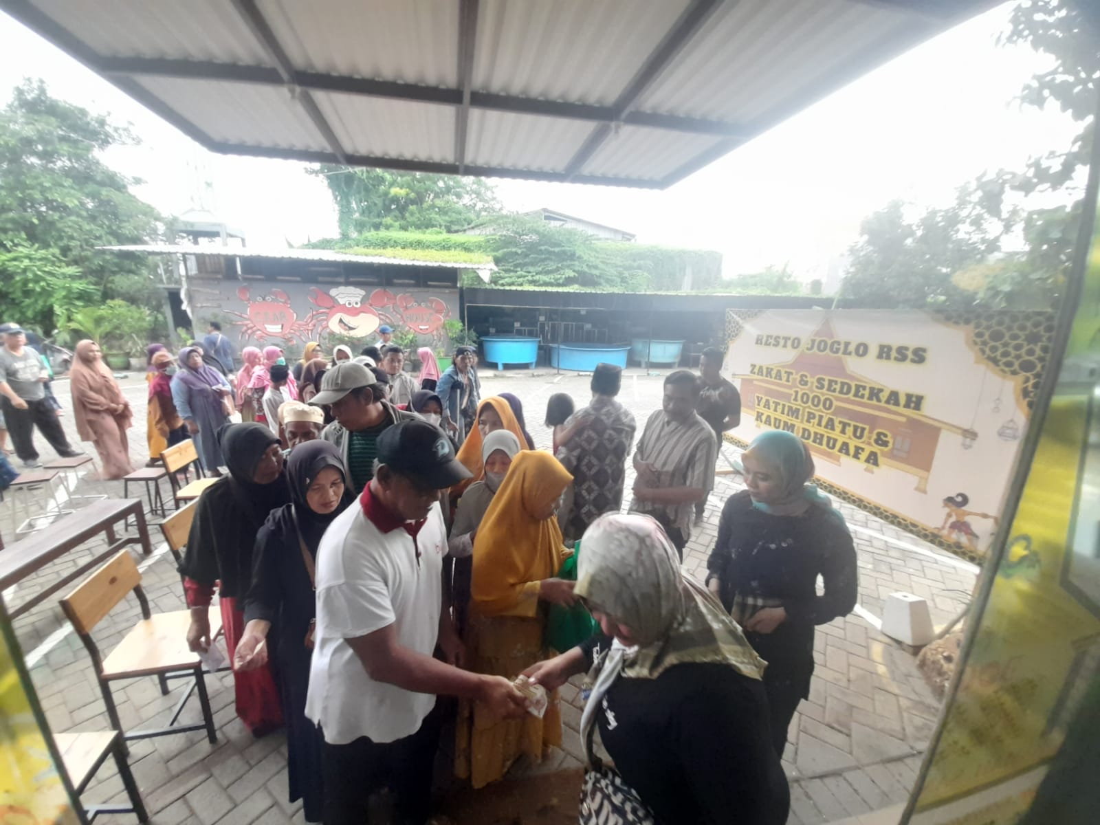 Untuk menghindari kerumunan , pembagian sembako dilakukan dalam tiga gelombang per hari: pagi, siang, dan sore. Hal ini menunjukkan perhatian Joglo RSS Resto & Cafe terhadap kesehatan dan kenyamanan penerima manfaat.