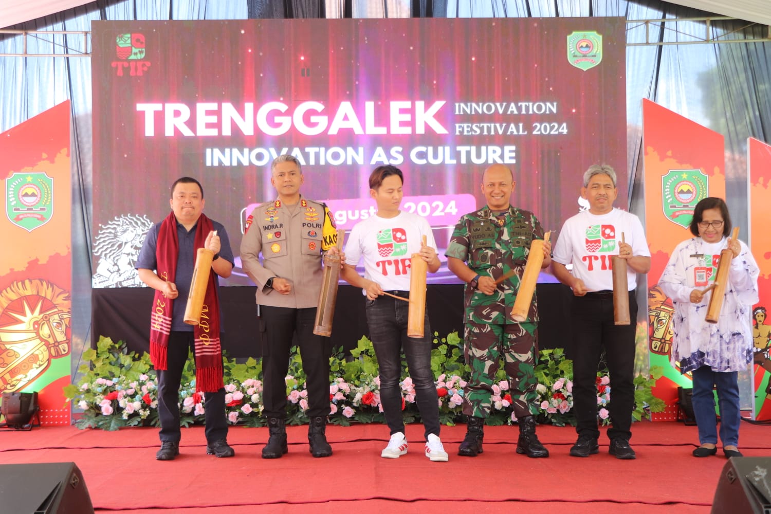 Polres Trengggalek – Gelaran Trenggalek Inovation Festival (TIF) dan Pasar Rakyat hari ini secara resmi dibuka. Seremonial pembukaan digelar di Alun-alun yang dindai dengan pemukulan kentongan oleh Bupati Trenggalek bersama jajaran Forkopimda. Senin, (19/8).