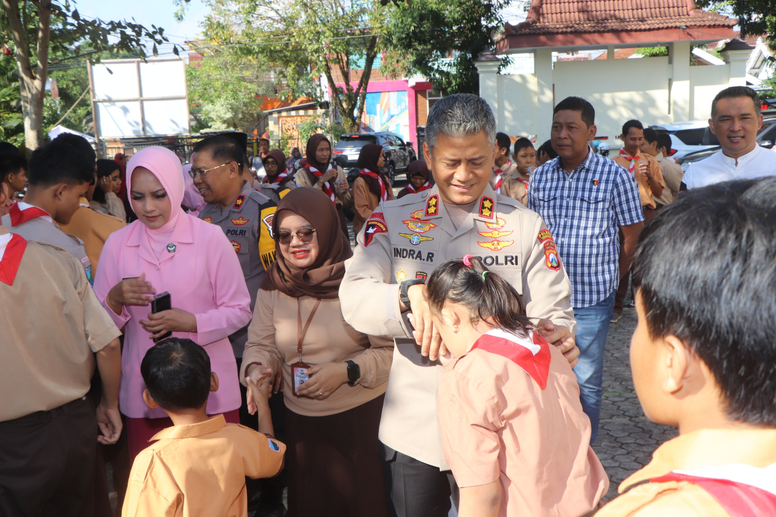 Polres Trenggalek – Hari pertama menjabat sebagai Kapolres Trenggalek, AKBP Indra Ranu Dikarta S.I.K., M.Si. berkunjung ke SLB Kemala Bhayangkari 1 Trenggalek. didampingi sang istri yang juga menjabat sebagai Ketua Yayasan Kemala Bhayangkari Trenggalek Ny. Fita Indra, AKBP Indra menyapa siswa siswi. Jumat, (19/7).