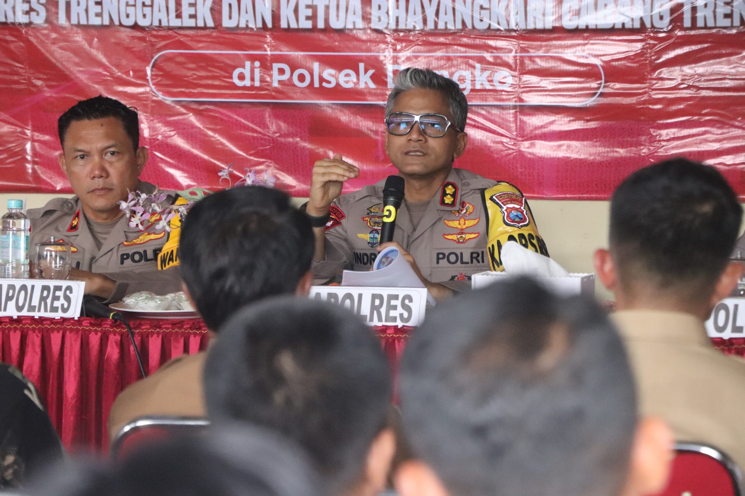 Hal tersebut disampaikan Kapolres Trenggalek AKBP Indra Ranu Dikarta, S.I.K., M.Si. saat melakukan kujungan kerja (Kunker) di Mapolsek Panggul dan Dongko. Selasa, (18/2).