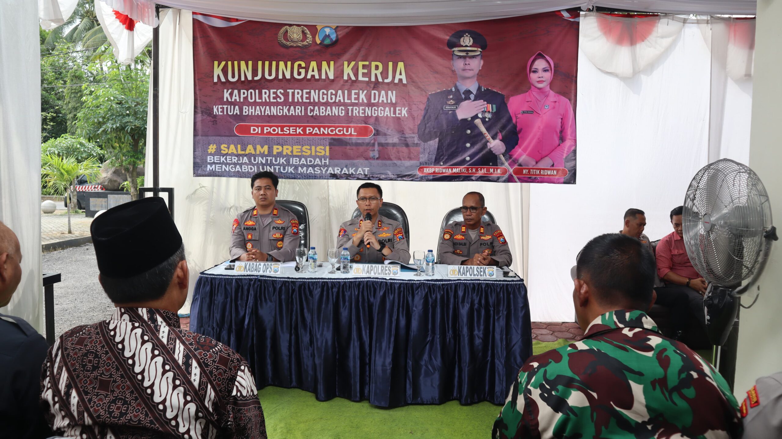 Polres Trenggalek – Kepala Kepolisian Resor Trenggalek AKBP Ridwan Maliki, S.H., S.I.K., M.I.K., didampingi Ketua Cabang Bhayangkari Trenggalek Ny Titik Ridwan, melakukan Kunjungan Kerja (Kunker) ke sejumlah Mapolsek jajaran diantaranya adalah Dongko dan Panggul. Jumat, (13/6).