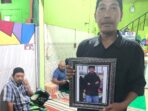 Achmad Tony Suliono, Ayah Muhammad Dito Alviansyah (19) ketika membawa foto almarhum