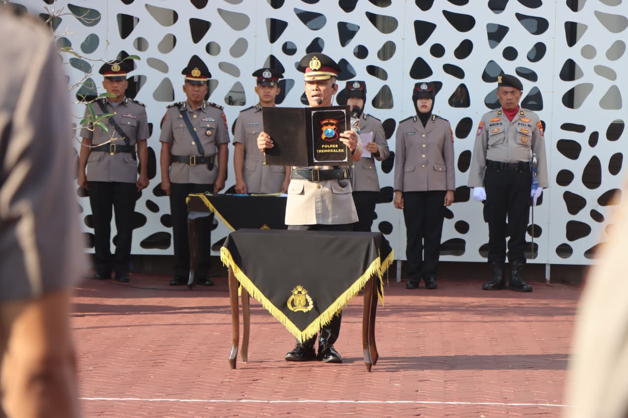 Bertindak selaku inspektur upacara Wakapolres Wakapolres Trenggalek, Kompol Herlinarto S.E., M.M. Sedangkan Perwira Upacara dipercayakan kepada Kompol Sudaroini, S.H. yang sehati-hari menjabat sebagai Kabag SDM dan Komandan Upacara diemban oleh Ka SPKT, Ipda Miftahul Khoiri, S.H.