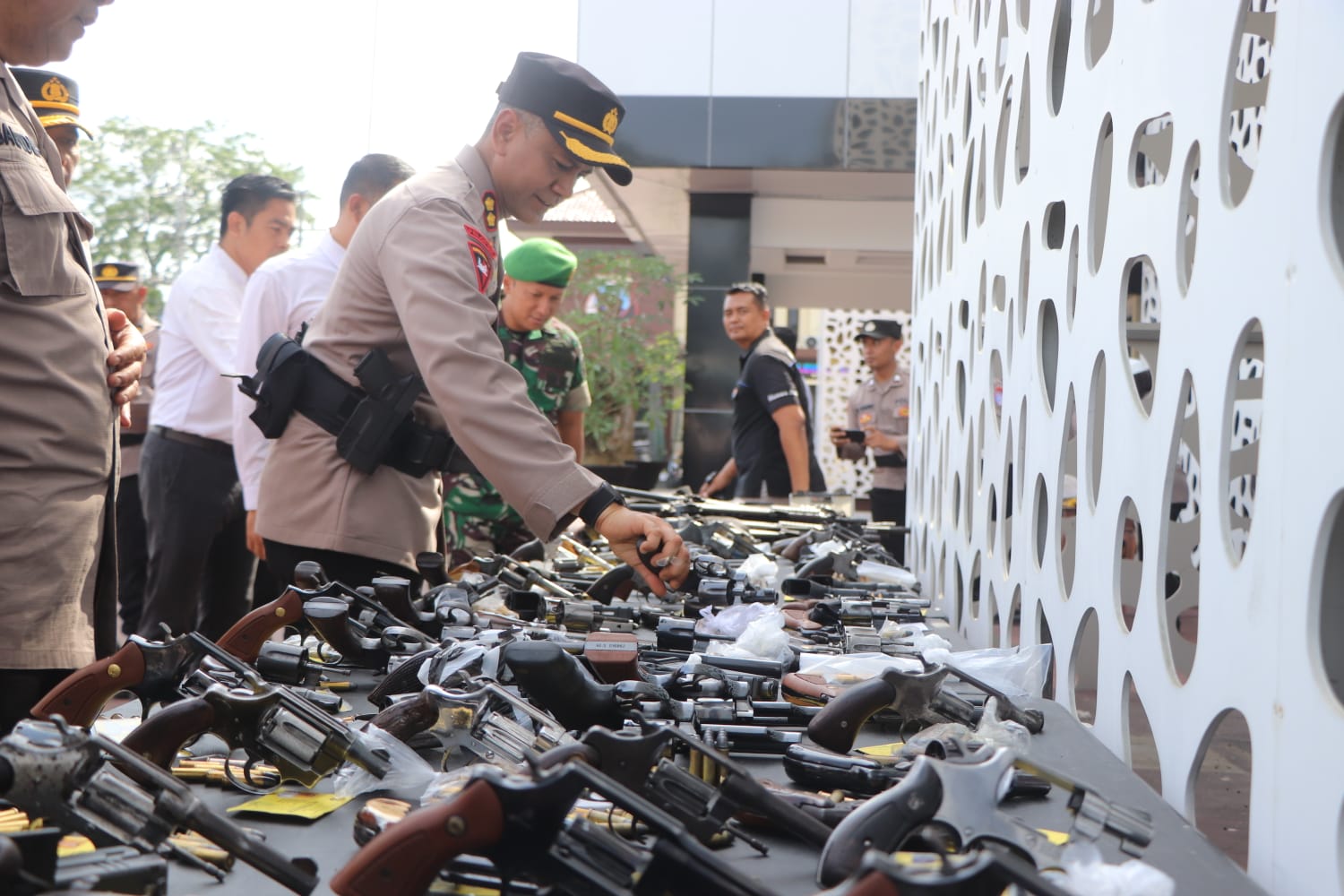 Keseluruhan Senpi dinas yang terdiri dari senpi laras panjang, bahu maupun pendek diperiksa satu persatu. Termasuk diantaranya adalah Senpi inventaris Polsek dan yang dipinjampakaikan kepada anggota.