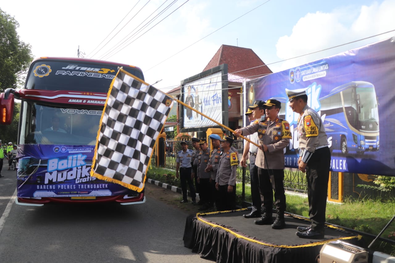 Polres Trenggalek Berangkatkan Rombongan Balik Mudik Gratis