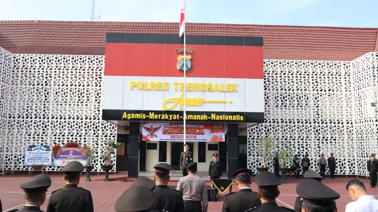 Polres Trenggalek – Kepolisian Resor Trenggalek menggelar upacara Hari Kesaktian Pancasila yang diperingati rutin setiap tanggal 1 Oktober. Upacara yang diselenggarakan di halaman Mapolres Trenggalek ini diikuti oleh ratusan personel gabungan dari Polres maupun Polsek jajaran. Rabu, (1/10).