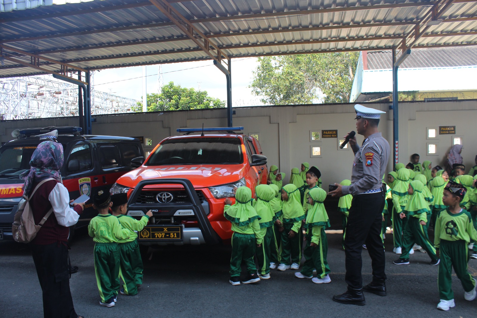 Polres Trenggalek – Mapolres Trenggalek hari ini menerima kunjungan istimewa dari RA Nurul Ulum Trenggalek. Puluhan anak-anak ini disambut hangat oleh sejumlah Polantas untuk mengenal lebih dekat tugas-tugas kepolisian. Rabu, (8/10).