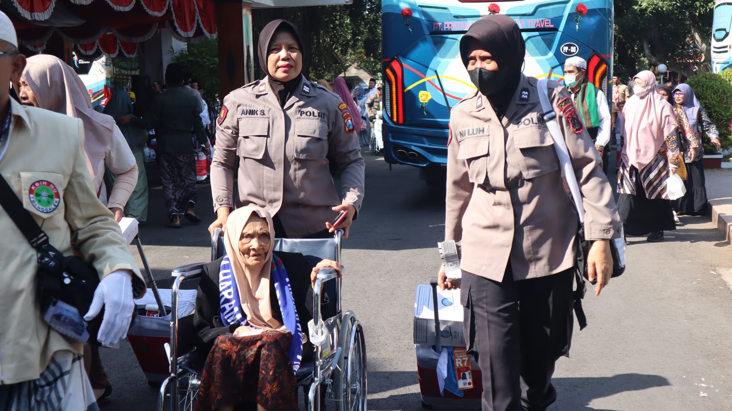 Puluhan Polwan Polres Trenggalek Dikerahkan, Bantu Kepulangan Jemaah Haji