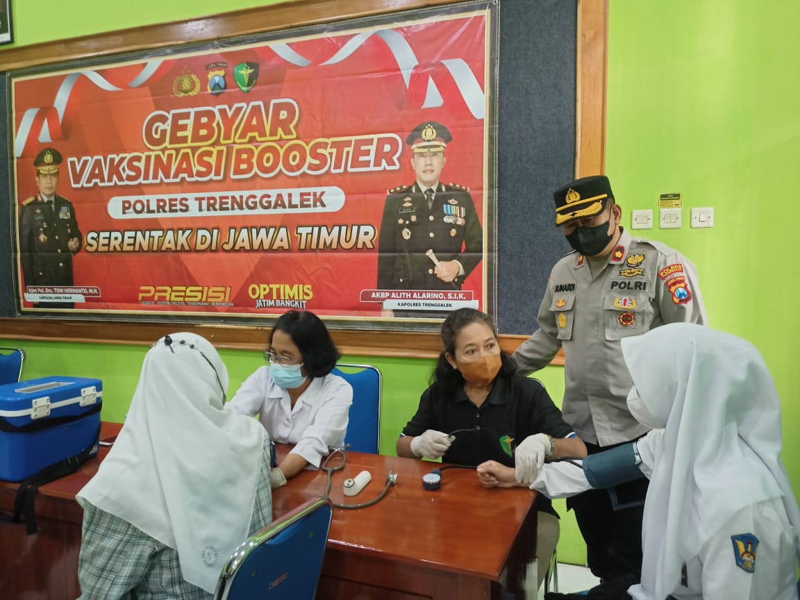 AKBP Alith mengatakan, beberapa minggu terakhir, pihaknya telah melakukan akselerasi vaksinasi di seluruh wilayah Kabupaten Trenggalek dengan membuka akses pelayanan gerai vaksin presisi maupun gebyar vaksinasi booster.