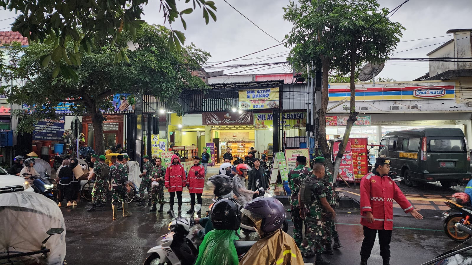 Meski sempat diguyur hujan, tak menyurutkan semangat personel TNI-Polri untuk mengisi bulan Ramadan dengan saling berbagi sesama.