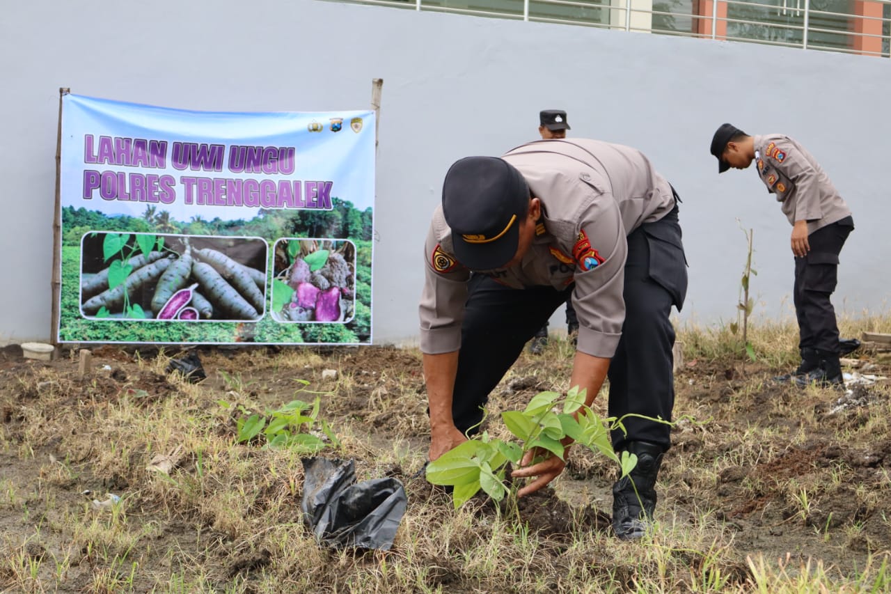 Polres Trenggalek – Konsistensi Polres Trenggalek dalam mendukung ketahanan pangan memang patut diacungi jempol. Setelah sukses dalam mendorong terwujudnya swasembada jagung, kini Kepolisian Bumi Menak Sopal ini mengembangkan budi daya uwi ungu.